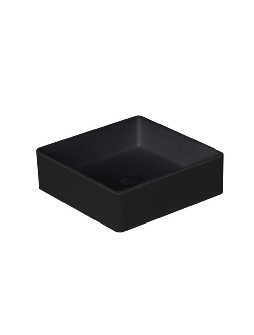 Deze StoneArt solid surface waskom heeft een formaat van 40x40 centimeter en een matte afwerking.